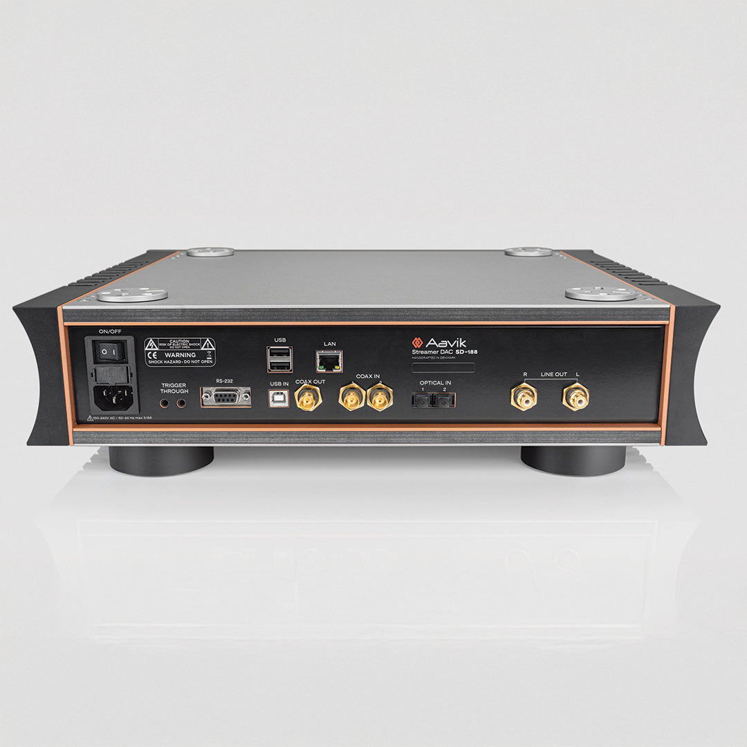 At the heart of the SD-188 is Aavik's exclusive Continuum DAC. Instead of a traditional chip, a programmed FPGA circuit is used to convert all digital audio to high-resolution DSD512 – a format that is close to analog reproduction. A custom-made digital filter ensures a smooth, natural signal transition without switching, while simple analog filtering completes the signal path. The result is an undisturbed, organic and deeply realistic audio experience.